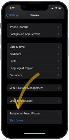 - Scroll down and tap Transfer Or Reset iPhone.